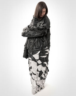 The creative process has therapeutic significance: just as the griever gradually tries to piece together a shattered reality,the body’s protective layers are built through sewing thousands of leather pieces. Immersion in slow, precise tasks helps structure time, and the finished objects externalize the pain and bring closure to the stages of mourning. The emerging pattern is individual and personal, just as the complex changes that occur in the soul.